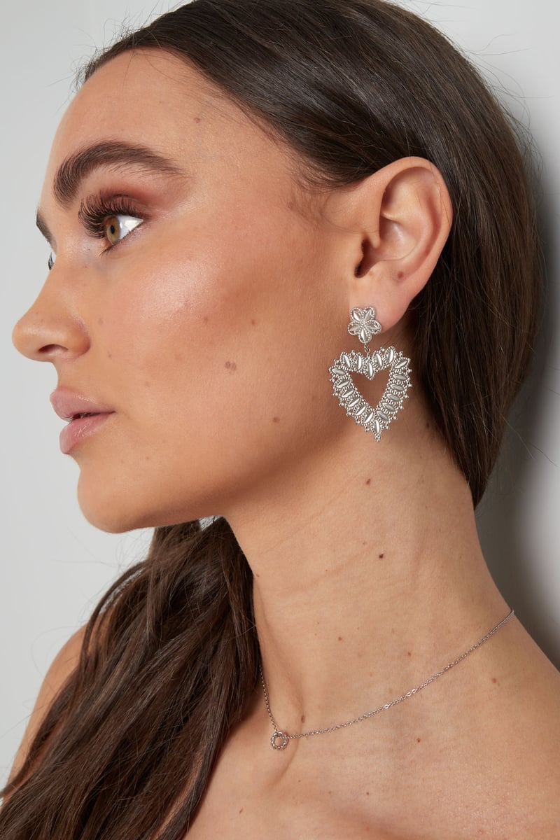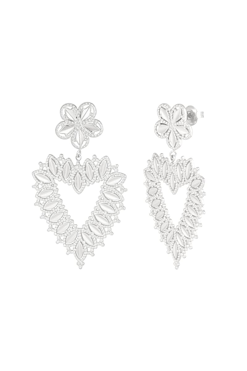 bloem oorbellen met hartvorm hanger