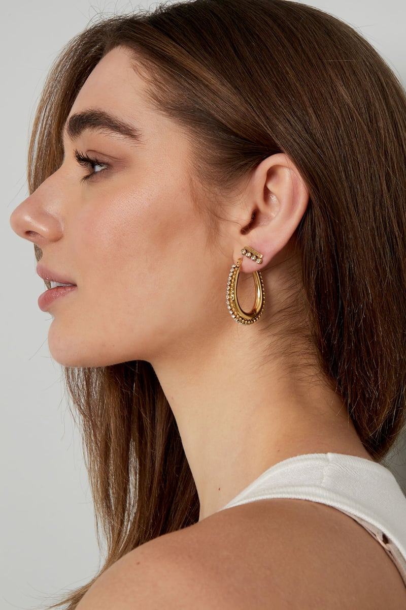 druppel vormige oorbel met steentjes met bolletjes