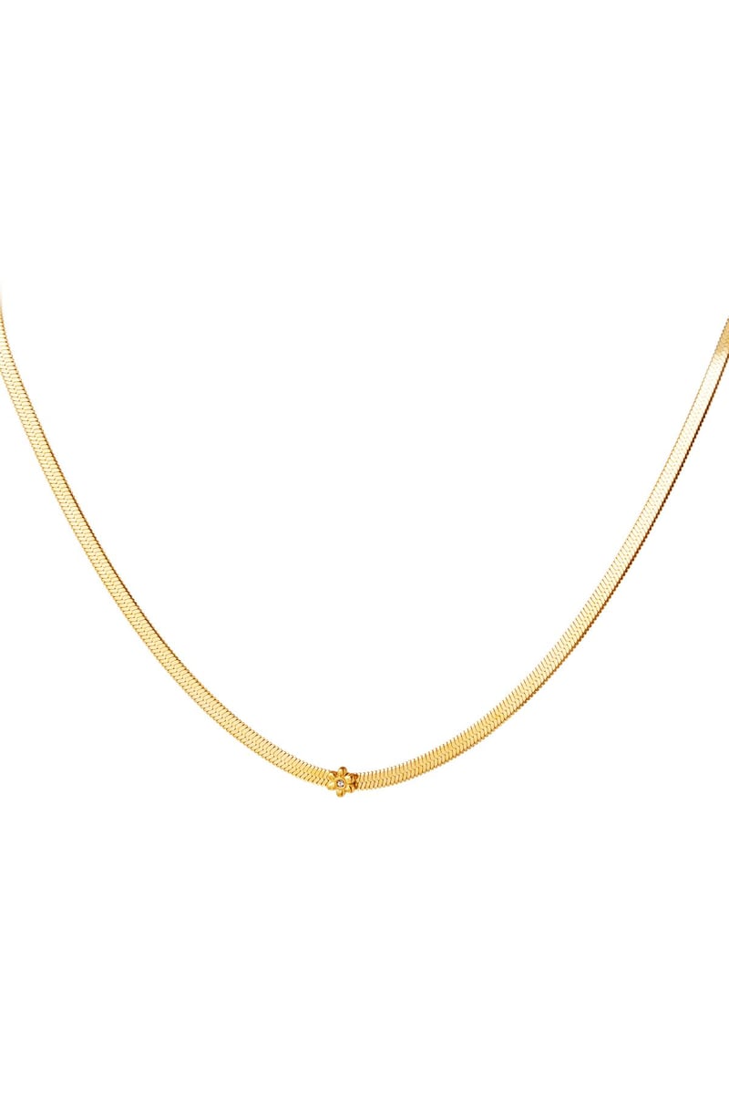 Edelstalen ketting met bloemetje Goud kleur Stainless Steel