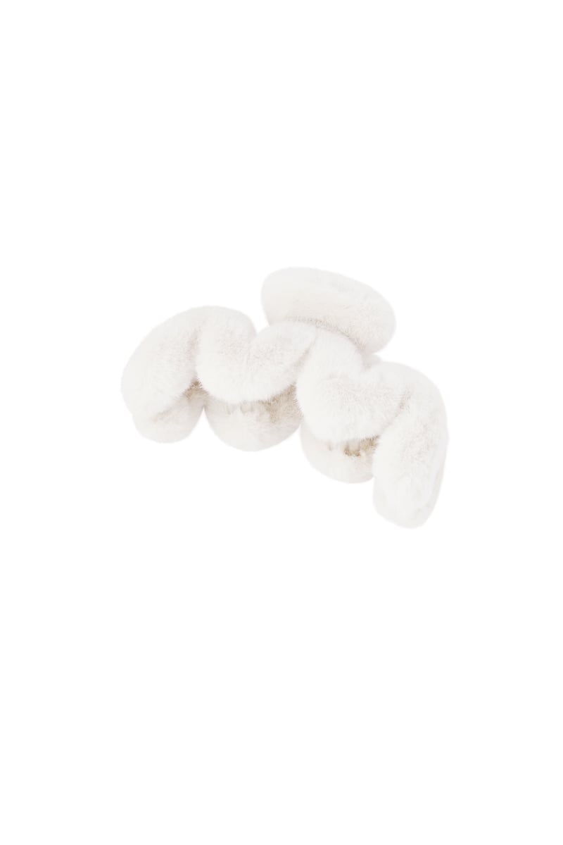 Ontdek de schattige fluffy zigzag haarclip in wit! Deze trendy clip is perfect om je haar stijlvol op te steken.