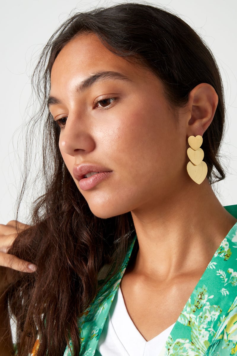 Oorbellen 3 keer hart - Goud kleur Stainless Steel