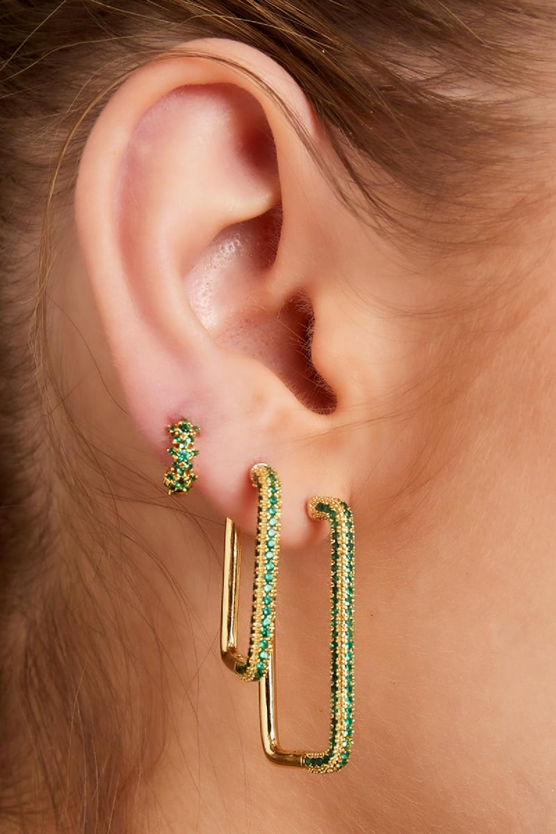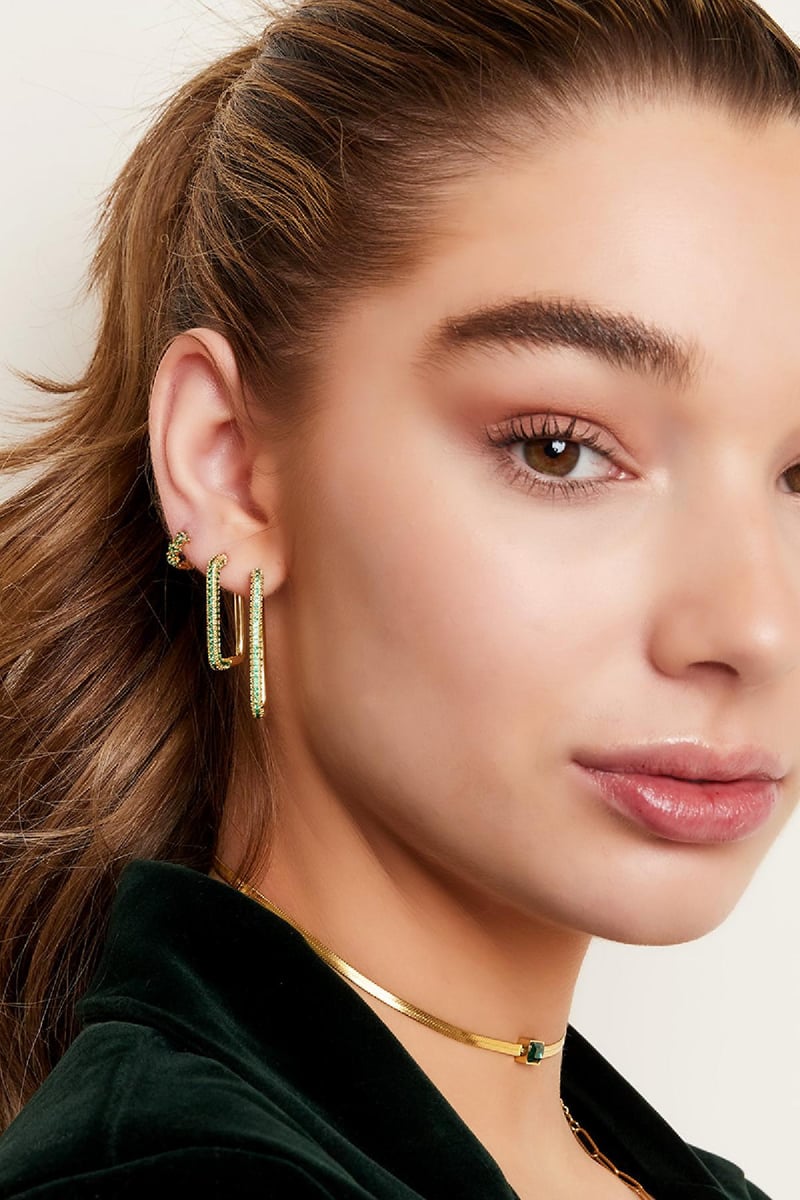 Ontdek de elegante Oorbellen rechthoek zirkoon in goudkleurig koper. Deze oorbellen zijn perfect voor dagelijks gebruik en voegen een vleugje... Lees meer
