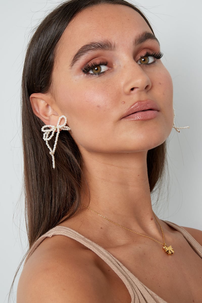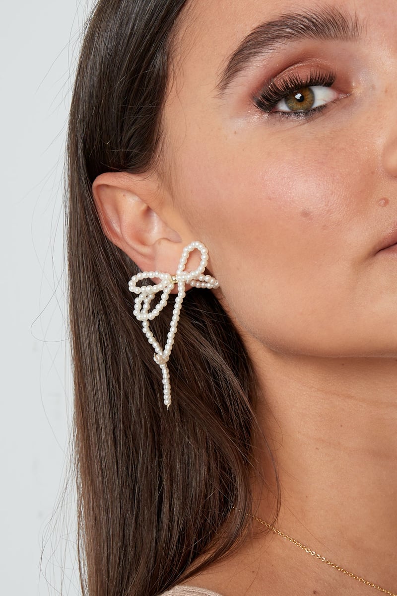 Parel met dubbele strik oorbellen