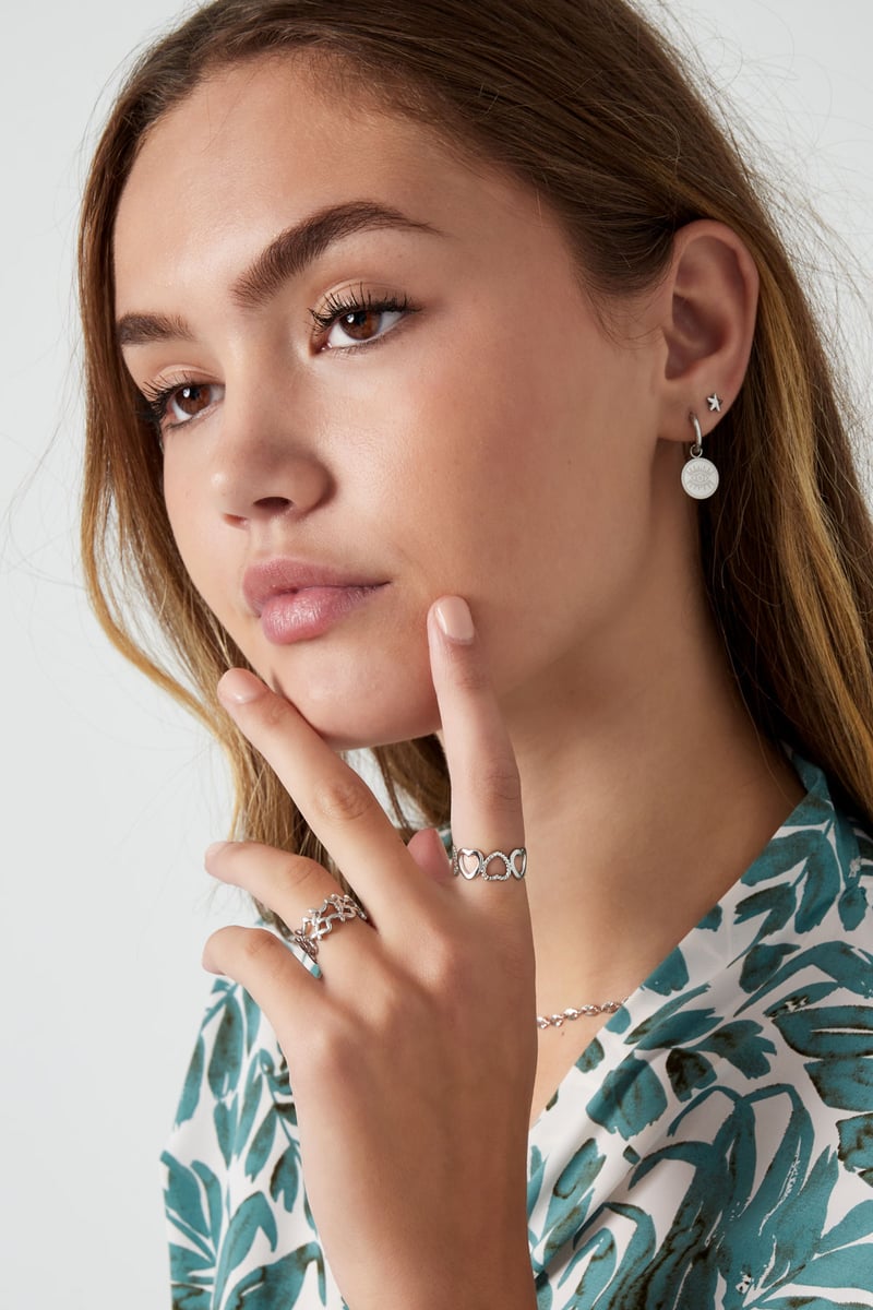 Ontdek de prachtige ring met verschillende hartjes, een must-have voor elke sieradenliefhebber. Deze ring is perfect om alleen te dragen... Lees meer